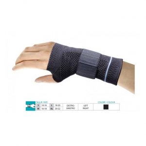 19,90€CARATTERISTICHE Polsiera realizzata in tessuto a tramatura differenziata. Dotata di stecca palmare sagomata. Cinturino elastico di chiusura supplementare per regolare la compressione. Imbottitura sul lato… -