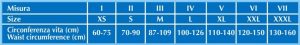 Cinture elastiche in speciale tessuto traspirante millerighe, perfettamente modellanti, aderenti, con ampio pannello foderato in puro cotone, adesivo e regolabile, assicurano una perfetta vestibilità e libertà di movimento.
